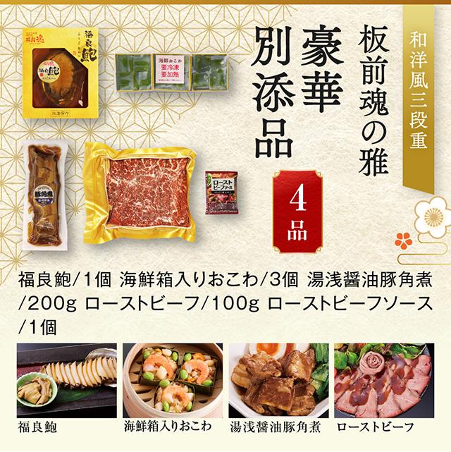 【別添品】福良鮑/海鮮箱入りおこわ/湯浅醤油豚角煮/ローストビーフ/ローストビーフソース