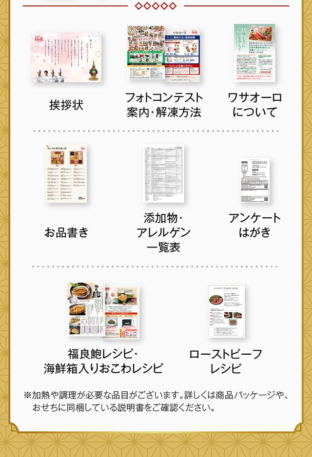 (お品書き、添加物・アレルゲン一覧表、解凍方法付き)
