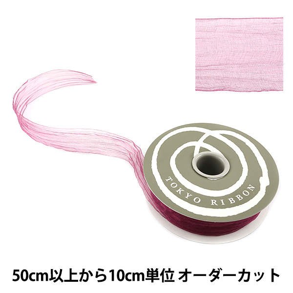 しわ加工がほどこされたオーガンジーの輝きが美しいリボンです。