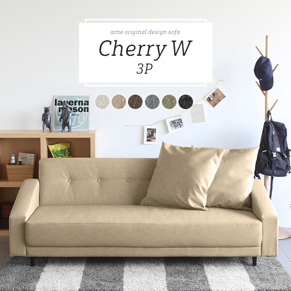 ソファ 3人 リビングソファ アイボリー ソファー 3人掛け 北欧 カフェ ワイドソファー 日本製 布 Cherry W 3P □