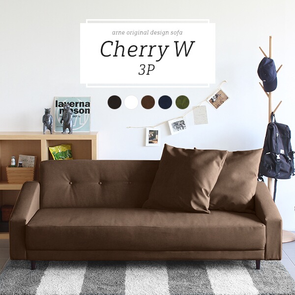 ソファ 3人掛けソファ 合皮 ワイドソファ レザー ホワイトレザーソファ ローソファ 日本製 コンパクト Cherry W 3P □