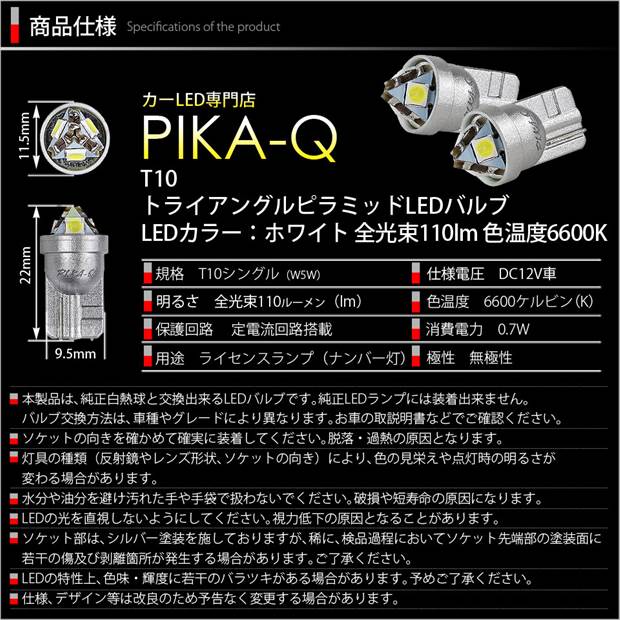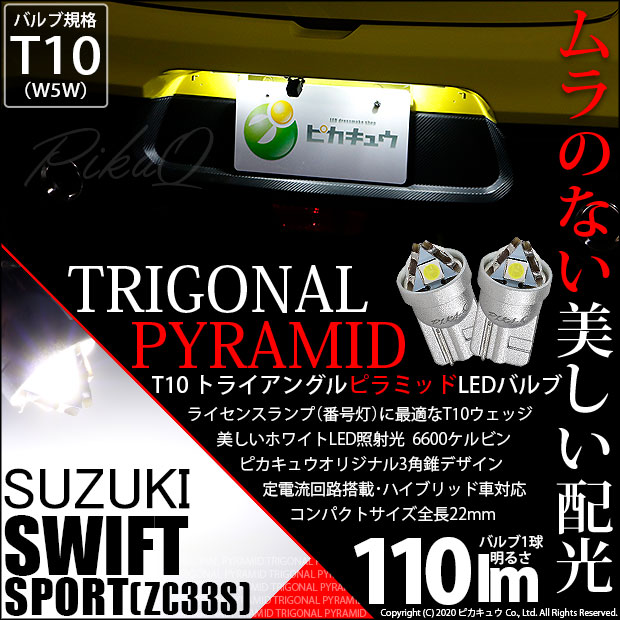 スズキ スイフトスポーツ (ZC33S) 対応 LED ライセンスランプ用LEDバルブ T10 ライセンス専用 トライアングルピラミッドLEDバルブ 110ルーメン LEDカラー:ホワイト 色温度:6600K 1セット2個入 3-C-4