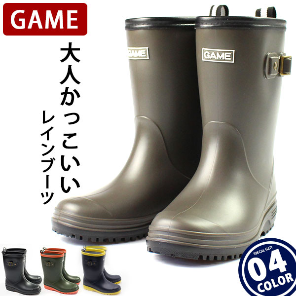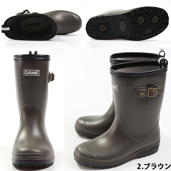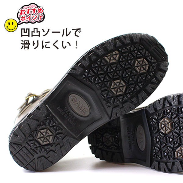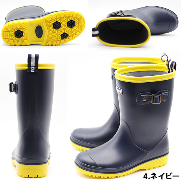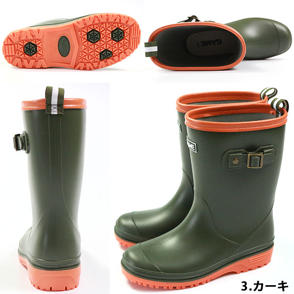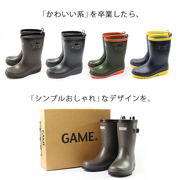 ブーツ キッズ 子供 長靴 黒 ブラック ブラウン カーキ ネイビー 防水 屈曲 GAME 1111