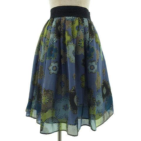 【中古】 ハムステッド Hampstead スカート ミディ丈 フレアー 花柄 ブルー系 青系 38 レディース