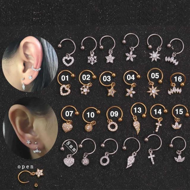 [ 20G バックキャッチピアス 耳用 ] チャームサーキュラーバーベル ボディピアス 20ゲージ リング型 ホースシュー 爪 ゴールド シルバー ステンレス ボディーピアス 揺れる 星 スター 花 ハート クロス 十字架 メンズ レディース 翼 フェザー ウイング プレゼント