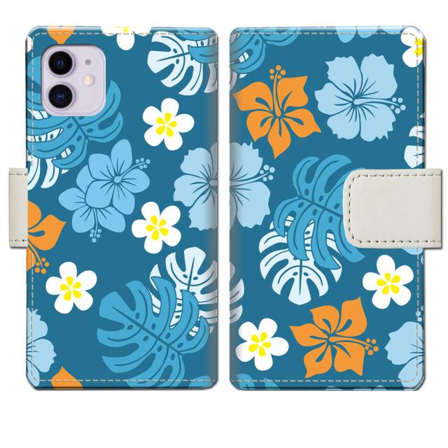 Apple iPhone11 ケース 6.1インチ - ブルーイッシュハイビスカスデザイン - 手帳型 スマホケース 手帳ケース 手帳カバー スマホカバー