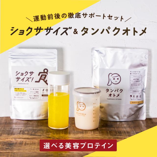 タンパクオトメ×ショクササイズの運動サポートセット!食品屋さんのスポーツドリンクと女性のためのプロテイン|砂糖不使用 人工甘味料不使用 BCAA ソイ ホエイ