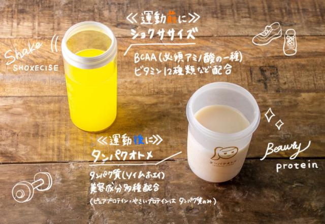 筋トレのお供は、「ショクササイズ」と「タンパクオトメ」。