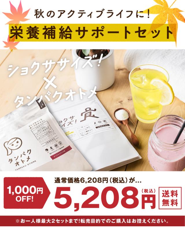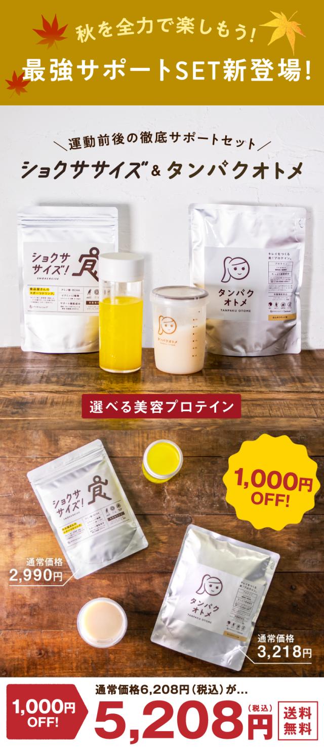 タンパクオトメ×ショクササイズの運動サポートセット!(※シェイカーは付きません。)期間限定 砂糖不使用 人工甘味料不使用 ソイ ホエイ プロテイン 美容 健康 ダイエット ドリンク スポーツ 運動 グルテンフリー ノンカフェイン 乳酸菌 食物繊維 送料無料