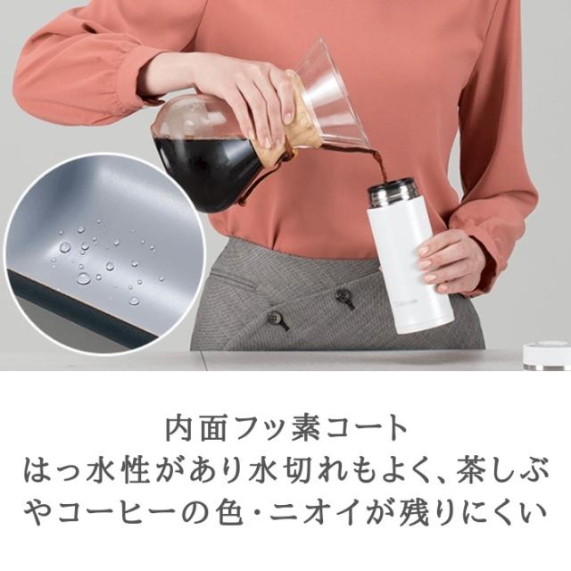 ・内面のフッ素コートは、はっ水性があり水切れもよく、茶しぶやコーヒーの色・ニオイが残りにくい