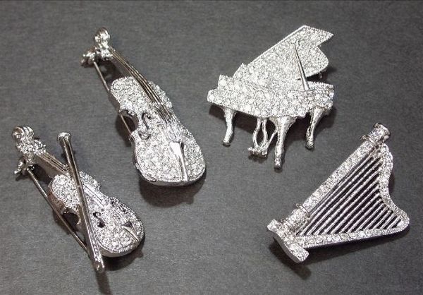 | クリアラインストーンを施した楽器モチーフのブローチです♪ 楽器・音符モチーフ ブローチ・コサージュ Lady's Necklace Men's Nacklace music |