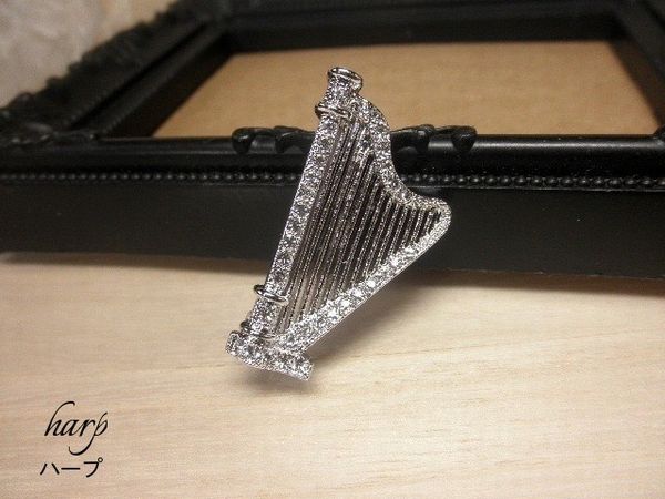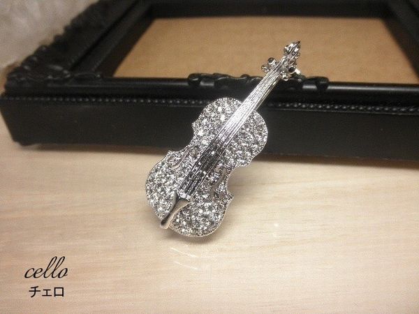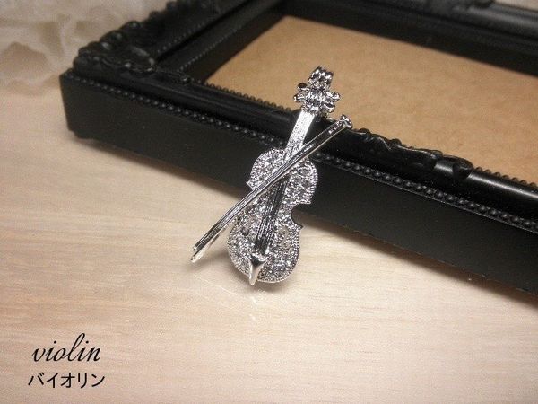 クリアラインストーンを施した楽器モチーフのブローチです♪
