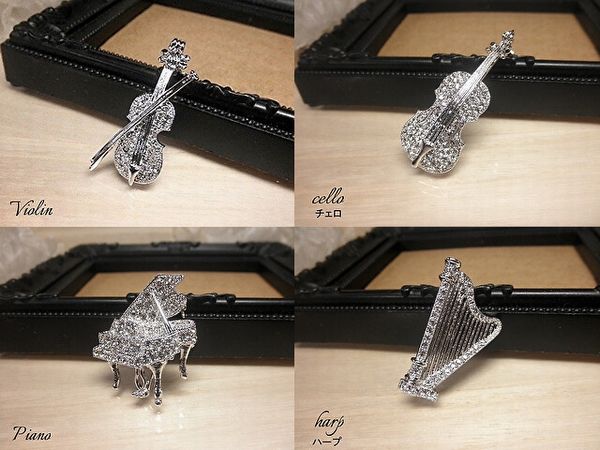 ブローチ レディースアクセサリー アクセサリー ファッション 定番 ラインストーン ミュージックシリーズ クリア 楽器モチーフ 楽器