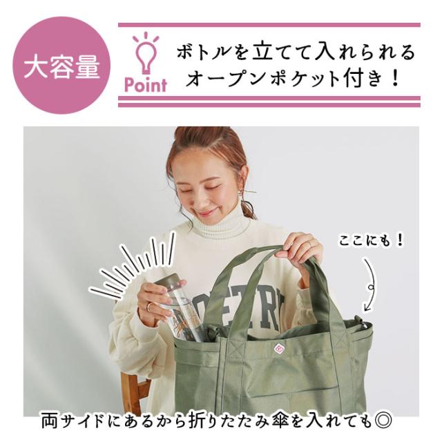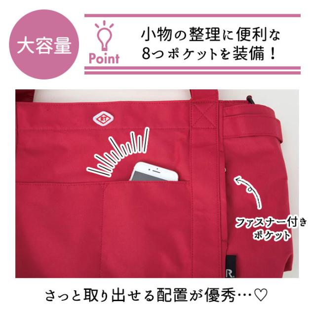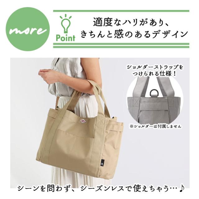 | 商品説明 | はっ水加工で雨でも安心♪濡れてもさっと拭き取れる、お手入れ簡単・軽量・大容量の3拍子揃った優秀トートバッグ。 トートバッグ専門店のROOTOTEだからこそ、『使いやすさ』にとことんこだわったアイテムです。 荷物が多い時は、とことん軽いバッグが欲しい!という声にお応えした自信作のトートバッグです。 シンプルでさらっと軽い素材ですが、適度なハリがあり、きちんと感もあるデザインなのでシーズンレスでお使いいただけます。軽くて大容量なので通勤・通学はもちろん、旅行用やマザーズバッグとしてもおススメです。内側には余計な仕切りなどがなく、ガンガン入れられるところが便利。 外側にはポケットが充実。傘やボトルが立てて入れられるオープンポケットや、ファスナー付きのポケットなど、必要なものがさっと取り出せます。両端のDリングにお好みのショルダーストラップをつけられるので、ショルダーバッグにも。お好みの長さで肩掛けができます。 スタイルや荷物の量に応じてアレンジできるのが嬉しいアイテムです。 きっと『毎日使いたくなる』バッグ。3つのこだわり! (1)「しまう」と「出す」を快適に。内外合わせてスムーズに出し入れにこだわった8つのポケット。 (2)毎日にちょうどいいサイズ。 軽いポリエステル素材の本体(約400g)に、A4サイズの書類や13インチPCもラクラク収納できます。 (3)雨の日だって、へっちゃら。晴れの日も、雨の日も、気にせずに使えるはっ水加工が施されています。 |