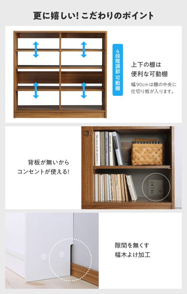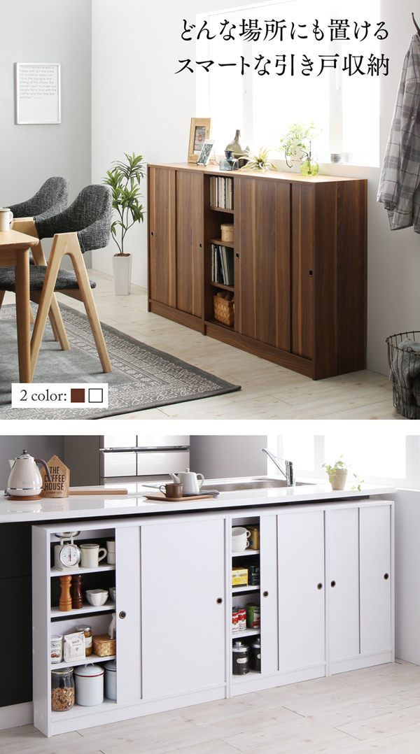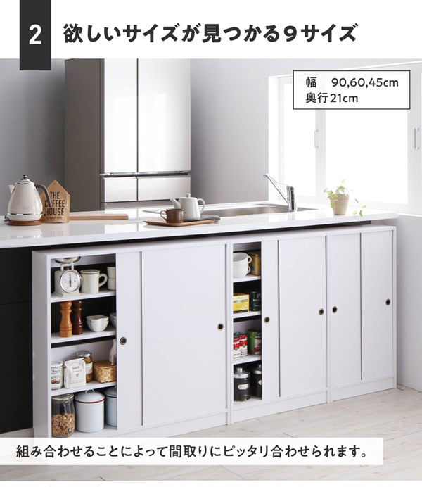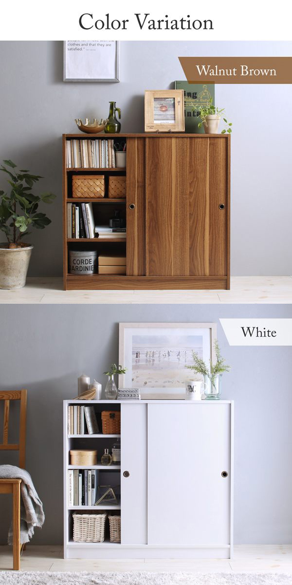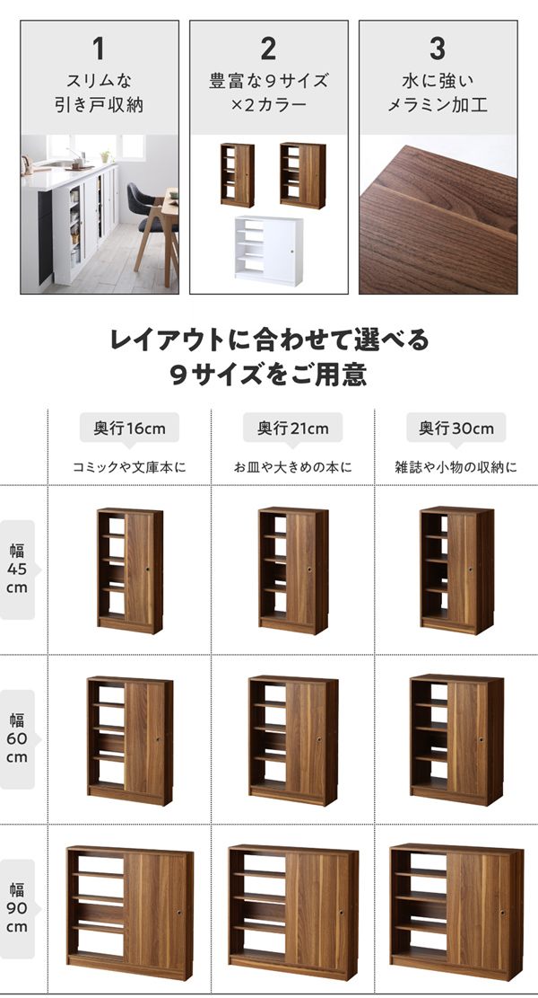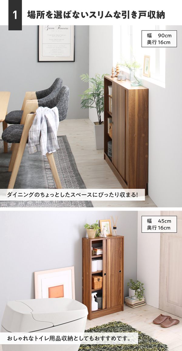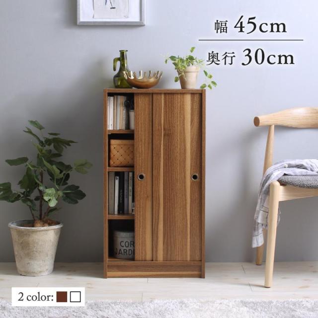 どんな場所にも置ける スマートな引き戸収納 薄型キャビネット 幅45 奥行30 ウォルナットブラウン