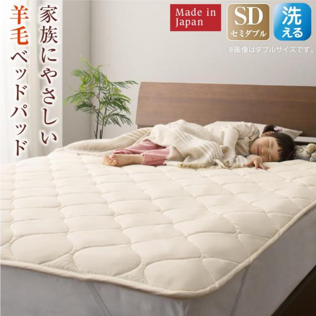 洗える 100%ウール 日本製 ベッドパッド 敷きパッド セミダブル ベージュ