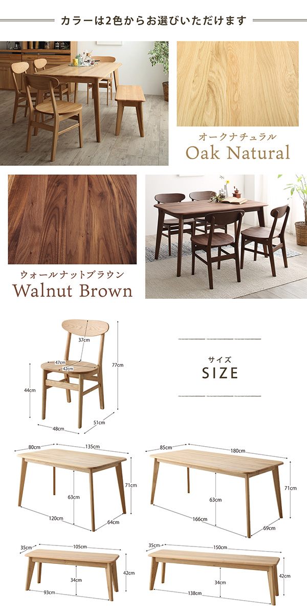 天然木総無垢材ダイニングシリーズ 〔Madiarno〕マディアルノ ダイニングテーブル単品 W135 オークナチュラル