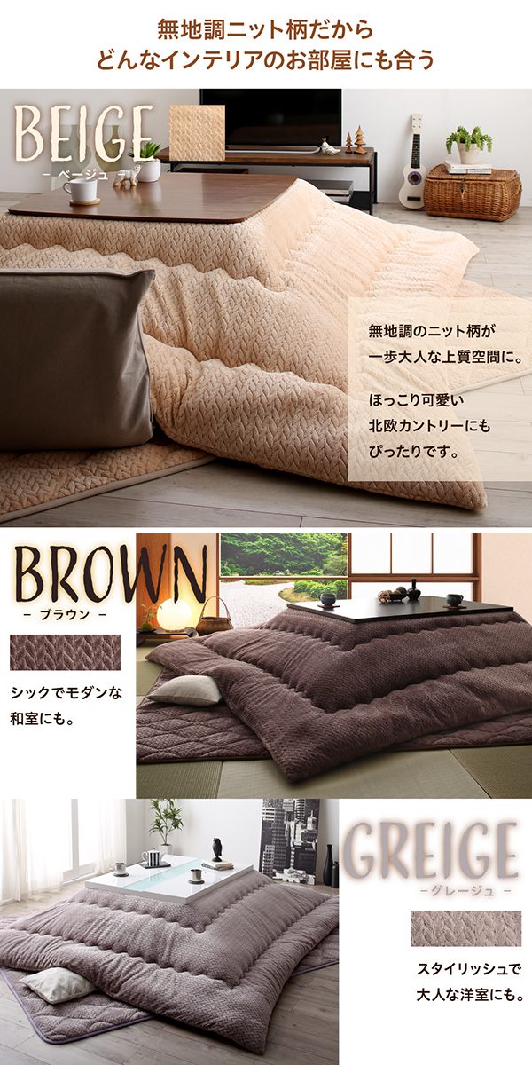 ニット風デザイン こたつ布団 〔Allanchinoh〕アランチーノ こたつ用掛け布団単品 長方形(75×105cm)天板対応 ベージュ