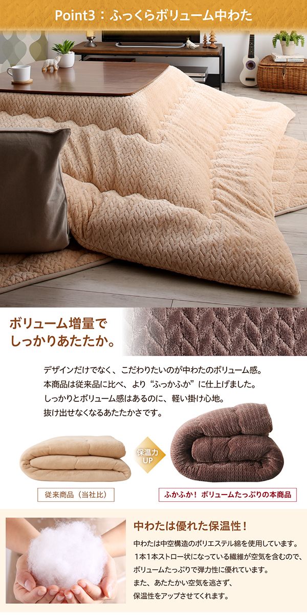 ニット風デザイン こたつ布団 〔Allanchinoh〕アランチーノ こたつ用掛け布団単品 長方形(75×105cm)天板対応 ベージュ 【北海道・沖縄・離島配送不可】