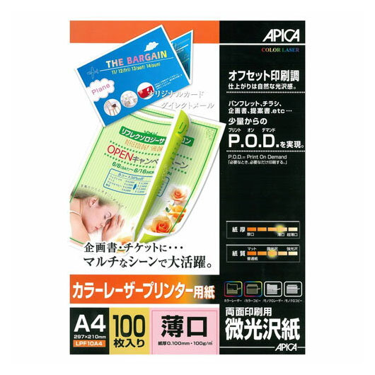 メール便対応 1冊まで アピカ カラーレーザープリンター用紙 LPF10A4 両面印刷用 微光沢紙 薄口 A4 100枚入