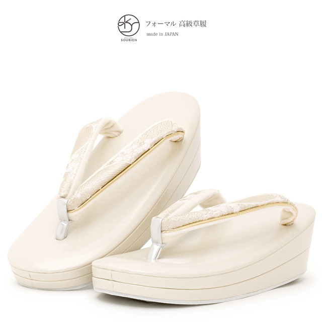 草履 レディース 留袖用 訪問着用 礼装用 フォーマル用 シルバー 白 梅 七宝 花唐草 優花緒 二枚芯 ぞうり ゾウリ 女性用 日本製 S M L LL