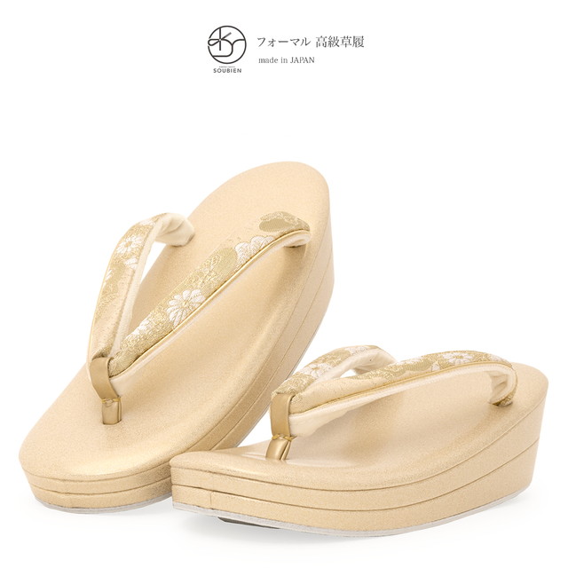 草履 レディース 留袖用 訪問着用 礼装用 フォーマル用 ゴールド 金色 菊花唐草 優花緒 二枚芯 ぞうり ゾウリ 女性用 日本製 S M L LL