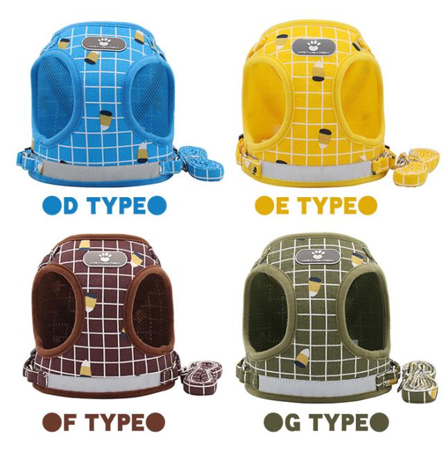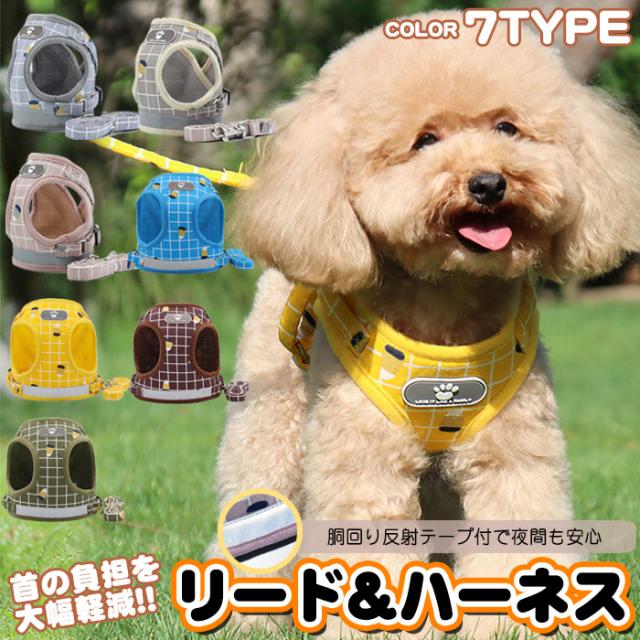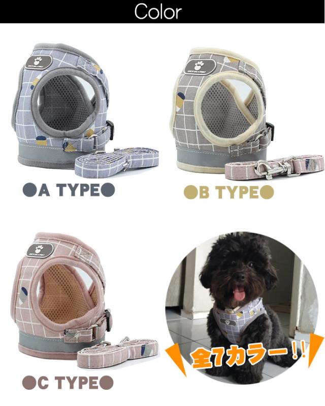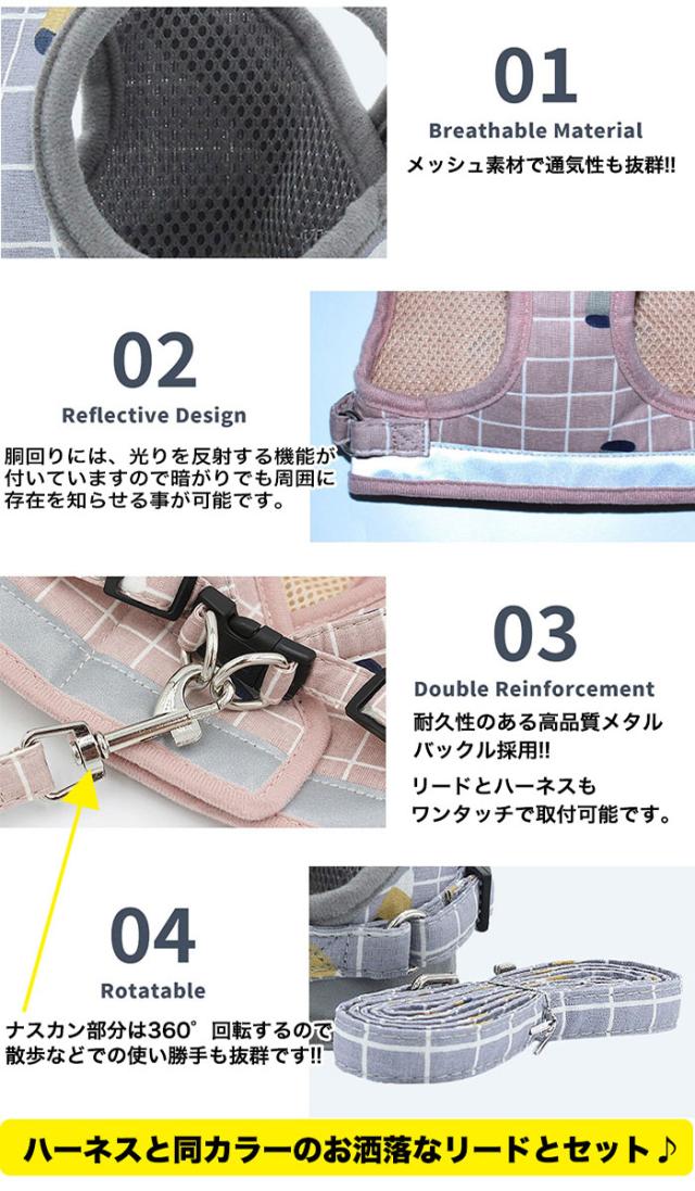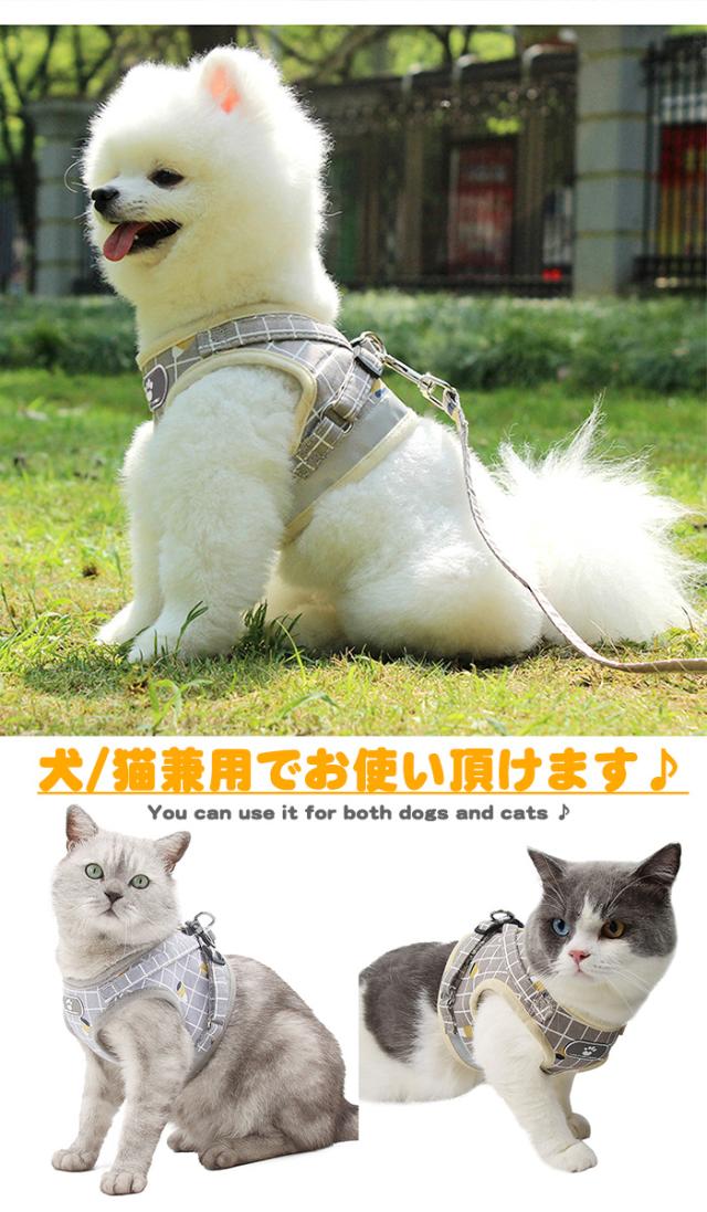犬 猫 兼用 ハーネス リード付 ペット 服 ウェアハーネス 胴輪 キャット ドッグ メッシュ h0250