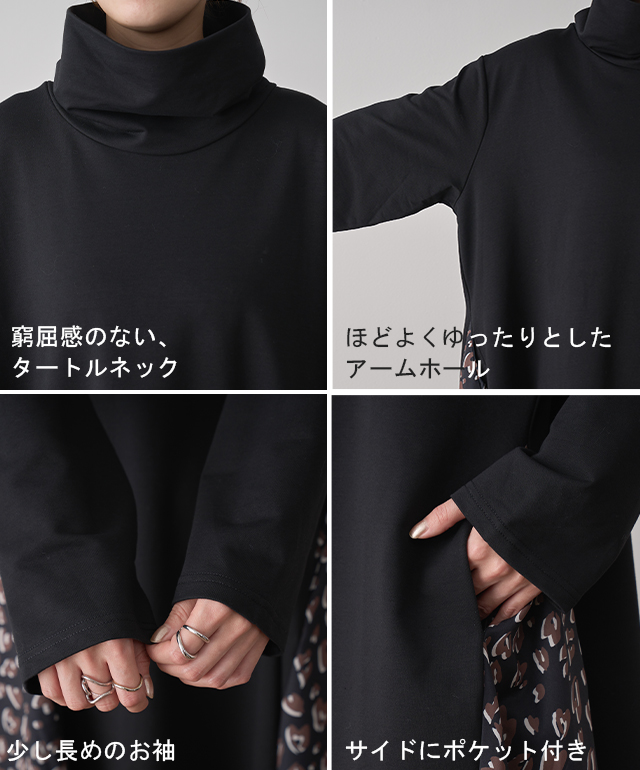 | サイズ | 着丈 | バスト | 裾周り | 肩幅 | 袖丈 | アームホール | タートルネック |