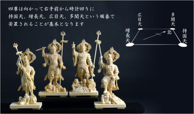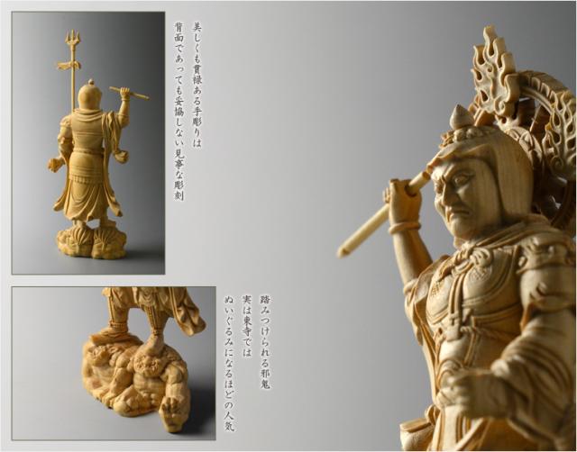 【総柘植製、手彫り仏像:東寺形(立体曼荼羅)人気の守護神「四天王立像」持国天・広目天・増長天・多聞天の4体セット】縁起仏像 趣味仏像 神 送料無料