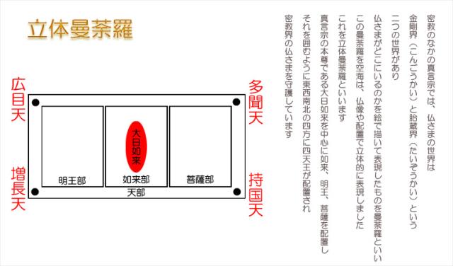 ・立体曼荼羅:密教のなかの真言宗では、仏さまの世界は