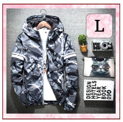 LAZA 迷彩柄 マウンテンパーカー カモフラ 【 L 】グレー 薄手・軽量・防風