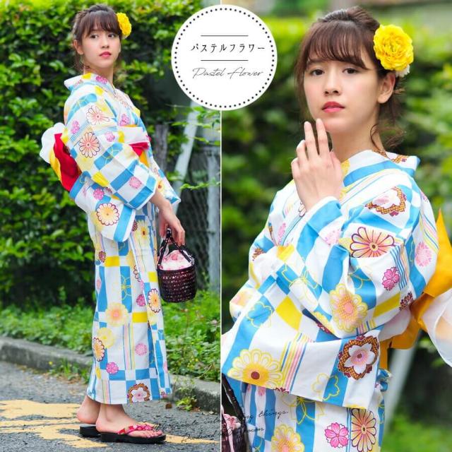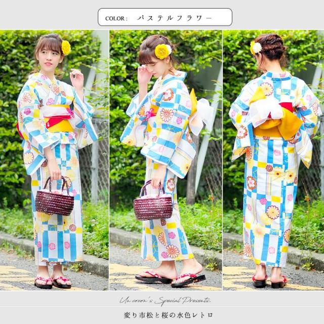 送料無料 夏新作 女性浴衣 レディース浴衣 浴衣 浴衣単品 仕立て上がり レトロ 女性用 フリー ホワイト 白 桜 水色 黄色