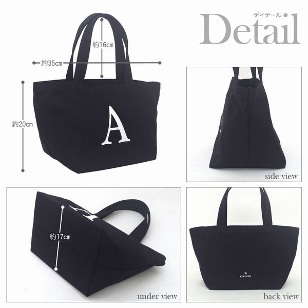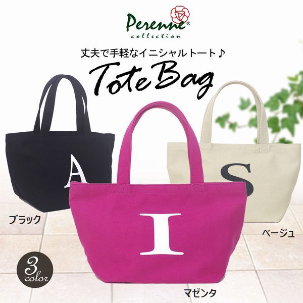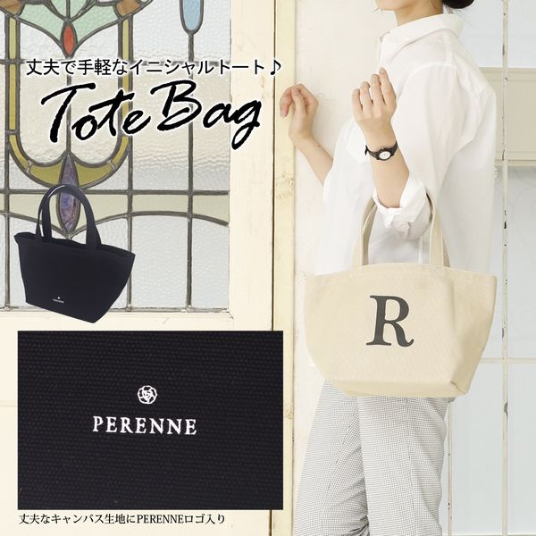 トートバッグ レディースバッグ レディースファッション 丈夫で手軽 イニシャルトート Perenne ペレンネ キャンバス生地 ブラック