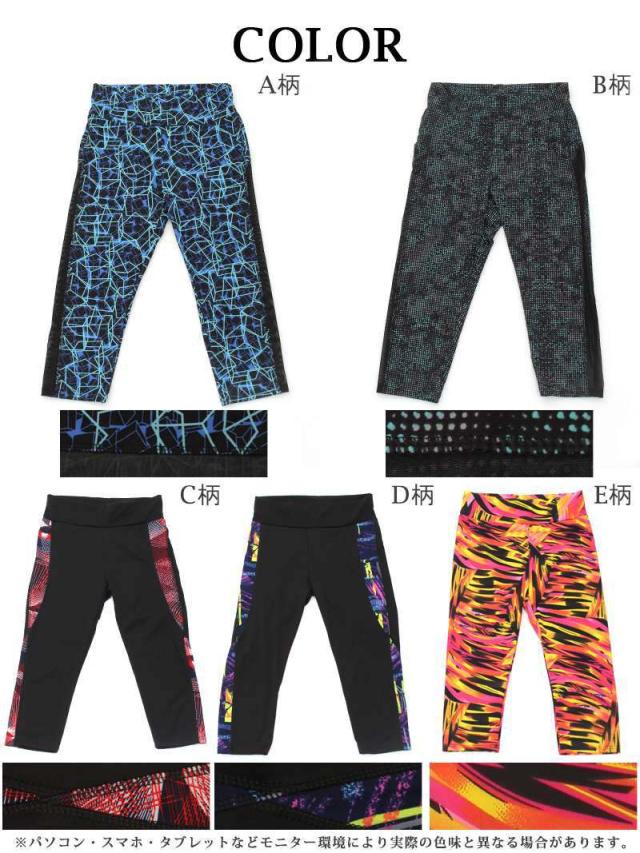 ☆派手柄やサイドラインに柄やシースルーデザインなどから選べる七分丈ヨガパンツはウエストゴムで楽ちんなフィットネスウェア♪