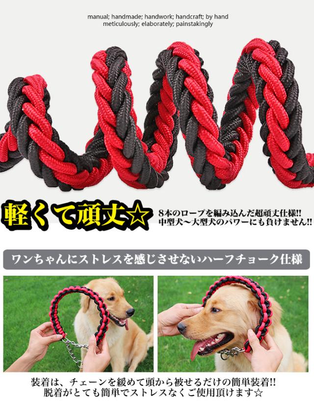 犬 リード 首輪 極太 ペット ドッグ ハーフチョーク チョーカー 編込み 大型犬 中型犬 小型犬 h0256