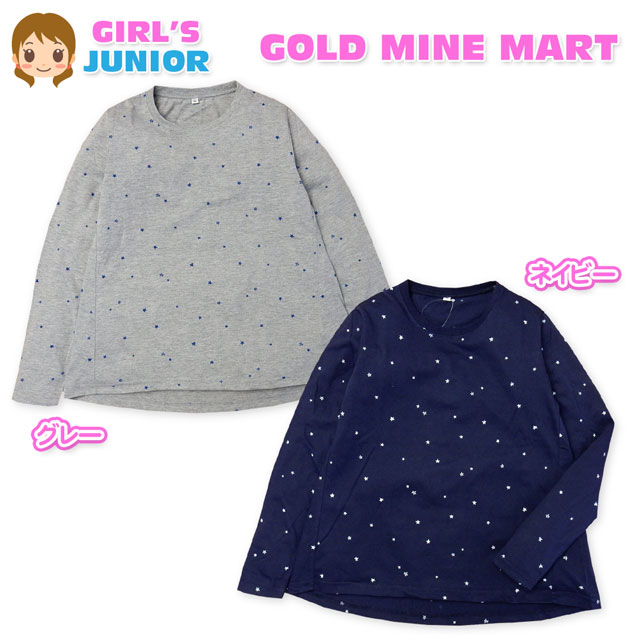 【送料無料】子供服 女の子 Tシャツ 長袖 天竺 星柄 裾テールカット Aライン 女児 ジュニア 140cm 150cm 160cm【メール便対応】