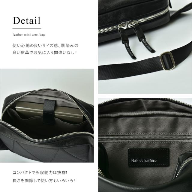 Noir_et_lumiere バッグ ウエストバッグ メンズ レディース レザー ボディバッグ 撥水加工 抗菌加工 送料無料 日本製 本革 牛革 男性 女性 大人 ビジネス フォーマル Made in Japan カジュアル プレゼント