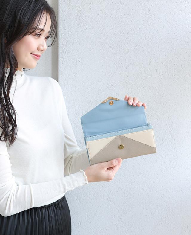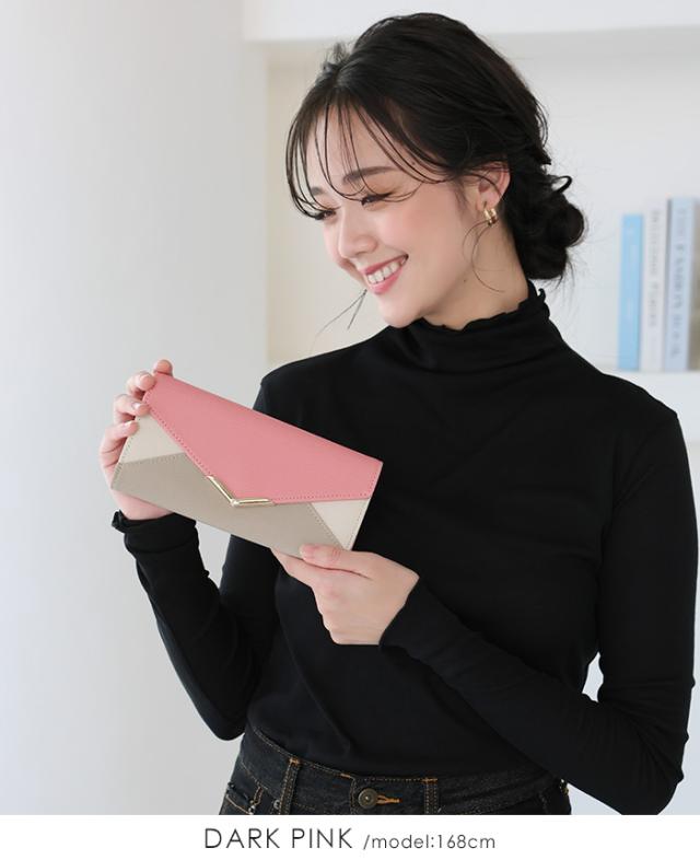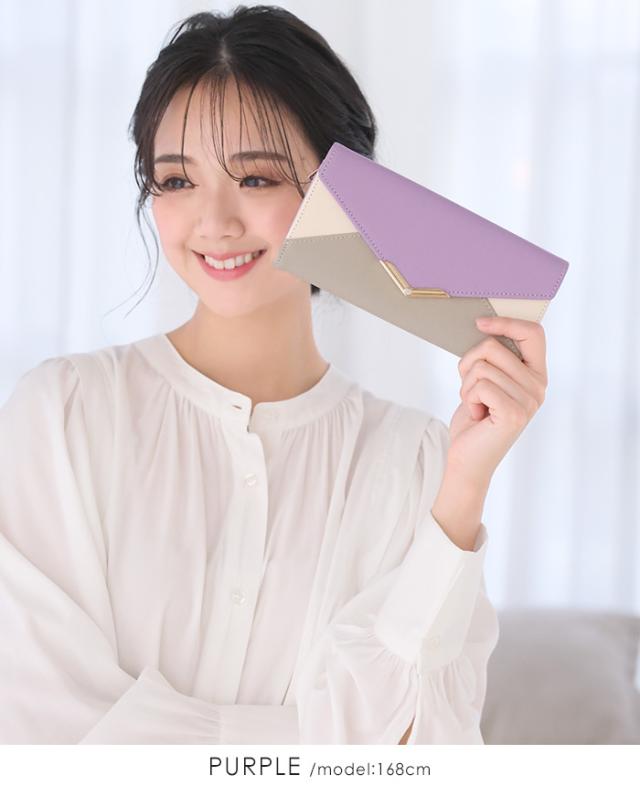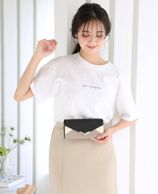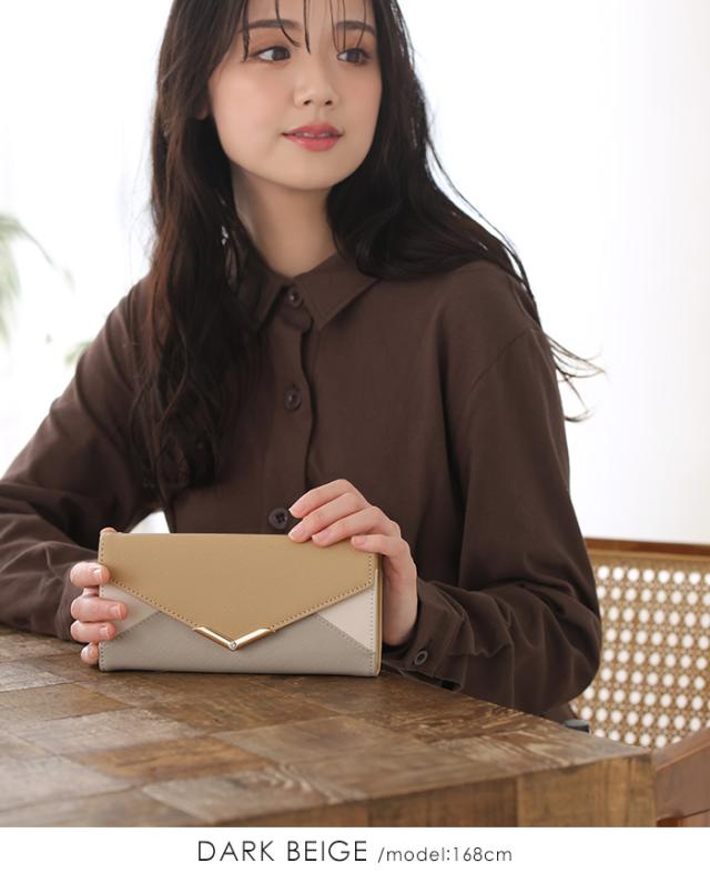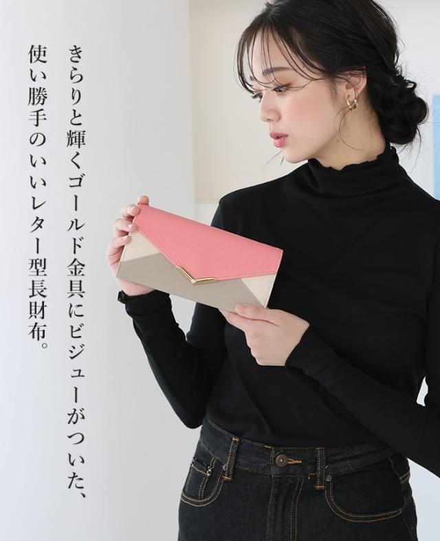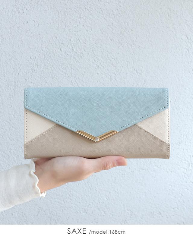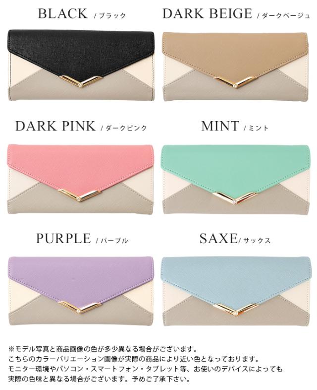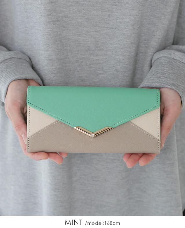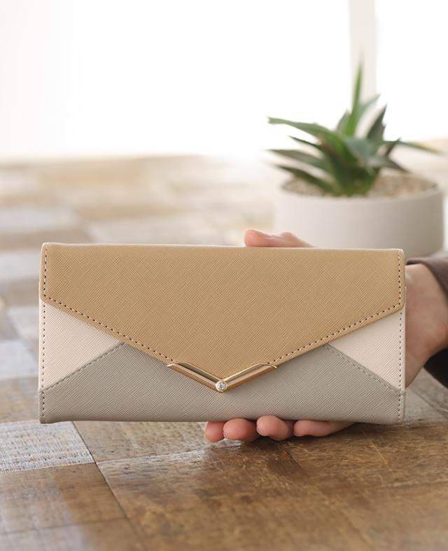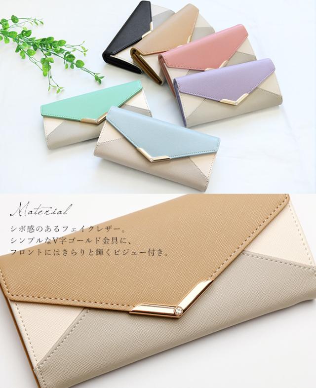 [メール便で送料無料]V字ビジュー長財布 多収納 レター お財布 配色 ビジュー ファッション雑貨 小物 レディース【メール便1点まで】[M便 1/1]