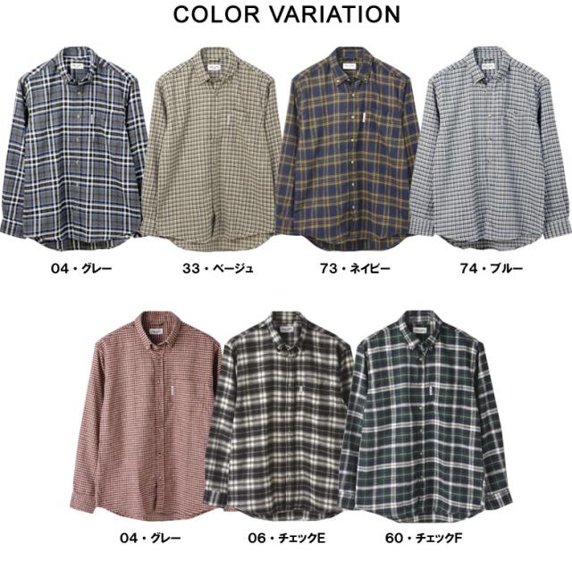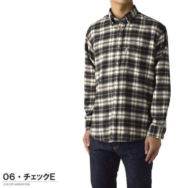 中肉厚の起毛ネル素材を使用し、ボタンダウン衿、シングルカフスのベーシックなデザイン。