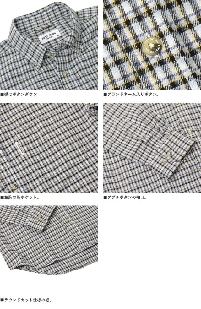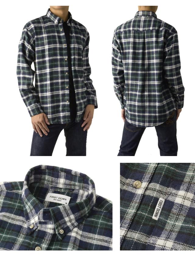 シャツ メンズ 長袖 ネルシャツ FIRSTDOWN the basic ファーストダウン ボタンダウン 起毛シャツ 厚手 トップス 秋 冬【B8L】【パケ1】