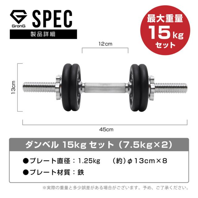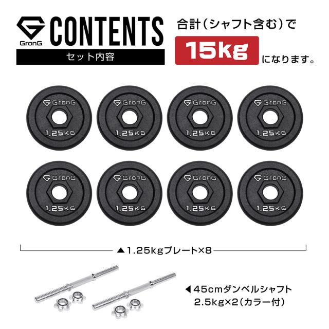 グロング GronG アイアンダンベル 15kg セット 片手7.5kg×2個 シャフト 28mm プレート 重量変更 調節可能 筋トレ 腕 ホームジム