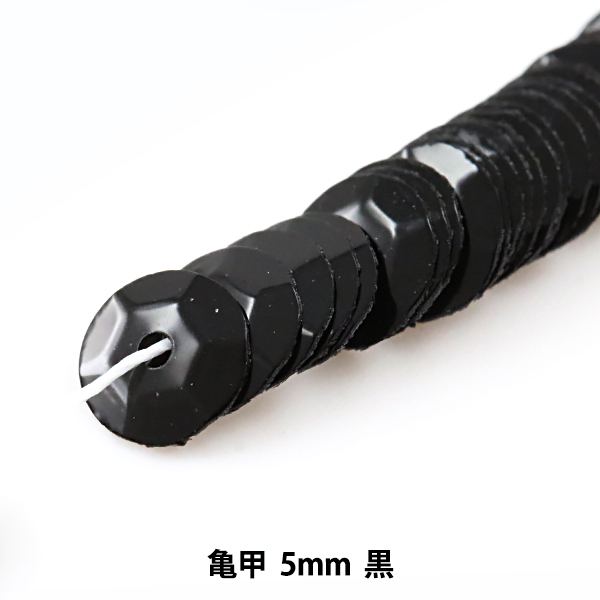 スパンコール 『糸通しスパンコール 亀甲 5mm 黒』