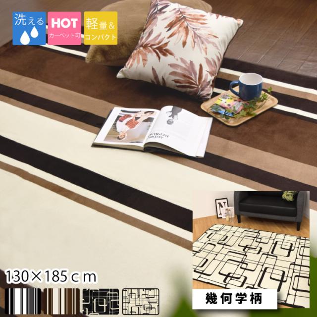 ラグ 洗える 1.5畳 在宅勤務 選べる2柄 ホットカーペット対応 軽量 約130×185cm モダン ストライプ こたつ敷き コンパクト 幾何学