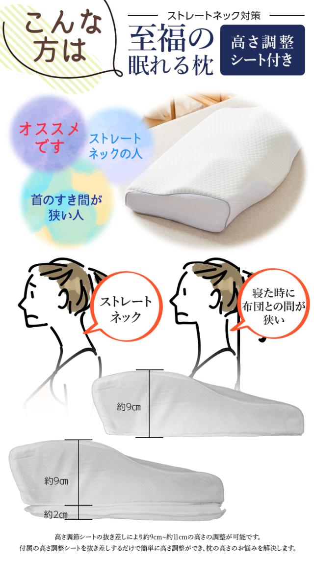 頭から肩への自然なカーブを確保するので、首こり・肩こり・ストレートネックにお悩みの方にもおすすめです。
