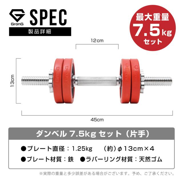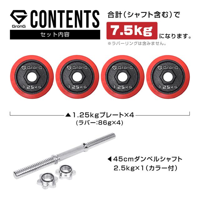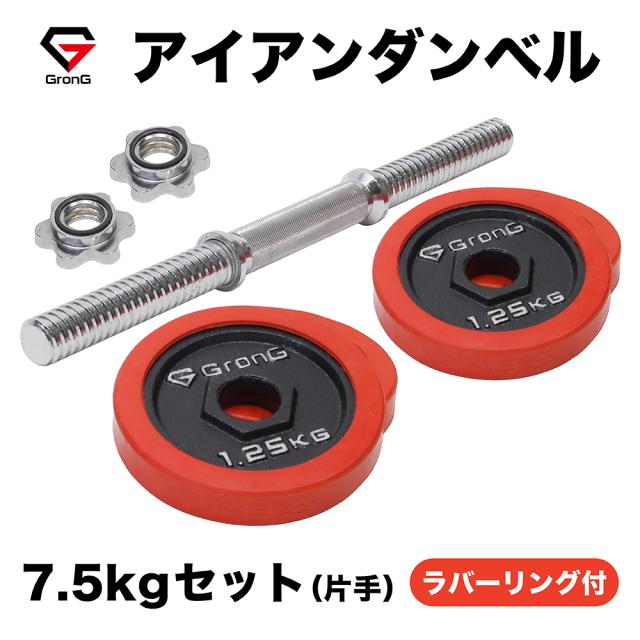 グロング GronG アイアンダンベル 7.5kg 片手 ラバー付き 28mm シャフト プレート セット 重量変更 調節可能 筋トレ 腕 ホームジム