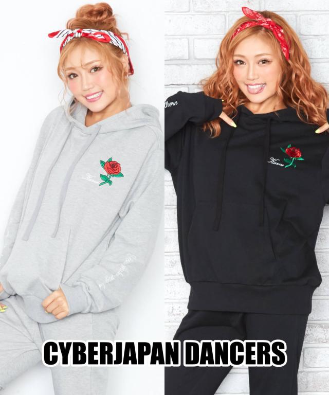 日本を代表するゴーゴーダンサーチーム、サイバージャパンダンサーズのトップダンサーであるKazueさんデザインの、プルオーバーパーカ&ジョガーパンツのセットアップ。