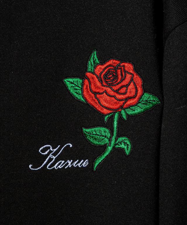 胸元の薔薇デザインがロックな雰囲気を格上げし、メンズの方にもおすすめの一着に仕上がりました。