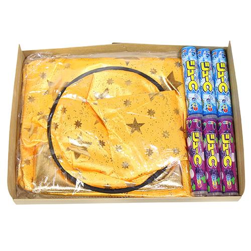ハロウィンの仮装にぴったりのマントとハットが付いたお菓子のセットです。