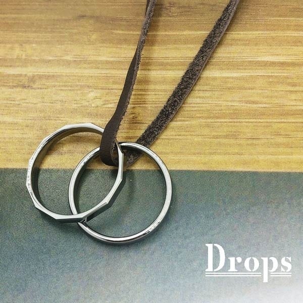 ゆったりとしたシルエットにグレーカラーのタングステンリングが2つ揺れるようなデザインのネックレス。