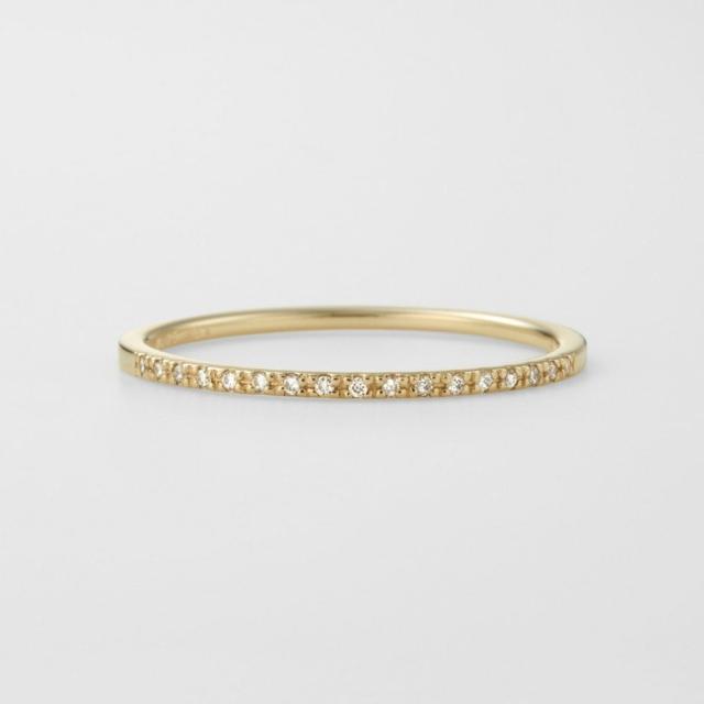極小のダイヤの粒を直線のラインに連ね、レーンのようなダイヤモンドリング。削ぎ落とされたシンプルなデザインだからこそ、どんなテイストのファッションにも合う、毎日身に着けられるベーシックデザインです。あえてダイヤと地金が一体化しているかのようなミニマルな仕上がり。素肌にさりげなくきらりと煌くダイヤが魅力的。シンプルで永く愛用できるアイテムなので、大切な方へのギフトへもオススメです。<価格改定のお知らせ> 2026年2月4日(水)より、素材の価格高騰に伴い価格改定を行います。商品タグに記載している価格につきまして、旧価格のものが混在している場合がございます。ご了承くださいますようお願い申し上げます。※サイズ直しプラスマイナス2号迄。※天然石や天然素材を使用しているものは、サイズ・色味・風合いの違いや、若干の傷、内包物の有無などに個体差があります。予めご了承ください。